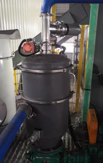 某環(huán)保行業(yè)客戶需要將小袋包裝的小蘇打加入到高塔料罐中,垂直距離20多米,最開始用鋼絲繩電動葫蘆,存在安全隱患,且投料會有粉塵,后考慮采用上海追新機械的氣力輸送方案。